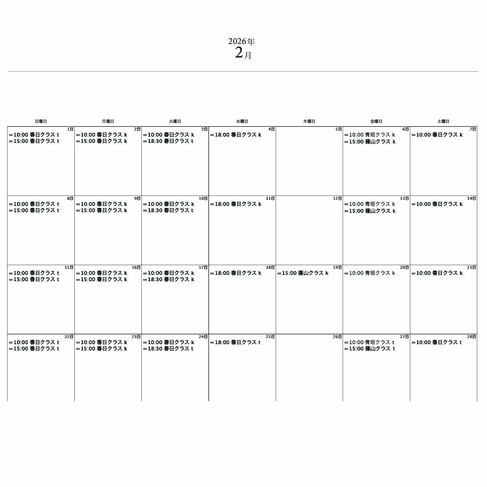 *週間スケジュールは、変更されることがあります。下記カレンダーにて詳細をご確認ください。